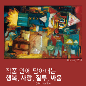 매년 365점 이상의 작품을 그려내며 엄청난 작업량과 속도를 자랑하는 문형태 작가. 아이가 그린 듯한 작품 안에서 사랑, 질투, 싸움 등 다양한 감정을 느낄 수 있게 해주는 작가의 묘한 작품에 컬렉터들의 마음이 흔들린 게 아닐까요?