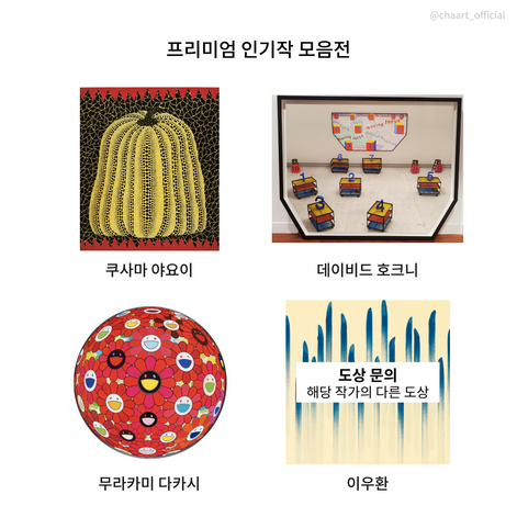 프리미엄 인기작 모음전으로 모인 작품들은 모두 기획전 할인가로 만나보실 수 있는데요, 옥션과 컬렉터들에게 꾸준히 사랑받는 프리미엄 인기작품들을 차트에서 보다 더 저렴하게 만나보시길 바랍니다!